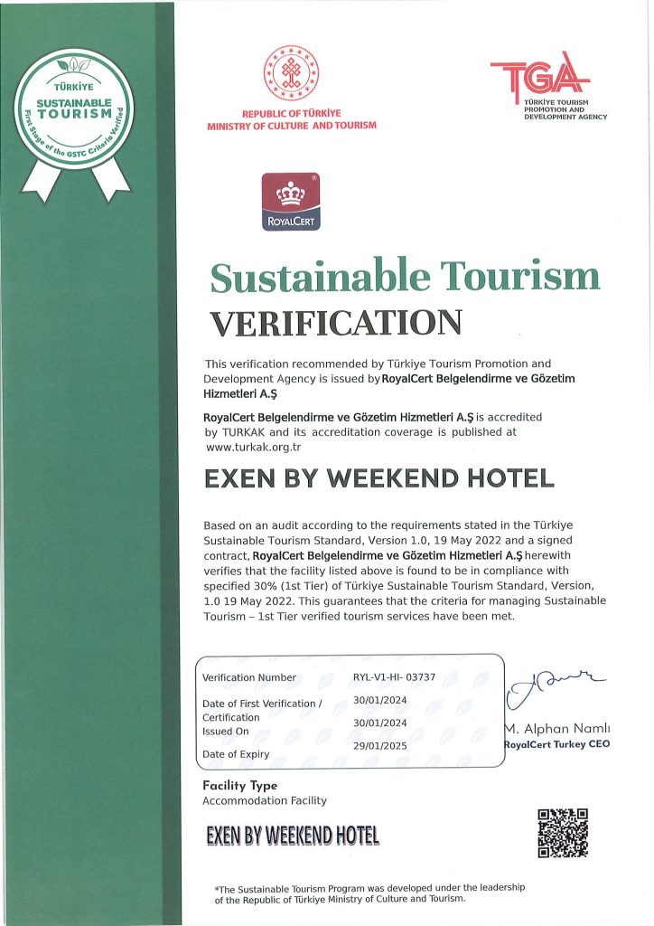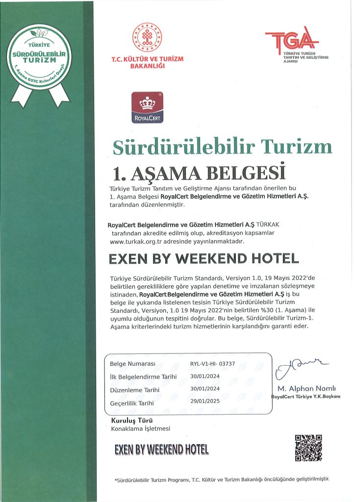 2024 yılı itibariyle sürdürülebilirlik çalışmalarımıza başladık. Bu doğrultuda gerçekleştirdiğimiz gelişmeyi; yönetimimiz, çalışanlarımız, konuklarımız, tedarikçilerimiz ve diğer tüm partnerlerimiz ile paylaşmayı ve böylece bu noktada yaratacağımız farkındalığı artırarak, ortak hedef ve başarılara dönüştürebilmeyi amaçlamaktayız.